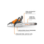 - STIHL® OILOMATIC® Saw Chain – The chain features specially engineered grooves designed to channel oil to critical wear areas.