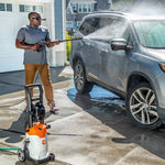 - Comes Standard with Two Nozzles and Detergent Sprayer – The included adjustable flat-jet nozzle, rotary nozzle, and detergent sprayer accommodate various cleaning tasks.