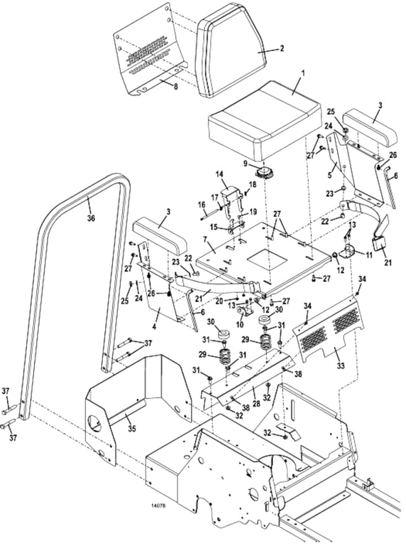 124 Seat Assembly & Ops Tube for 41' Decks - 2016