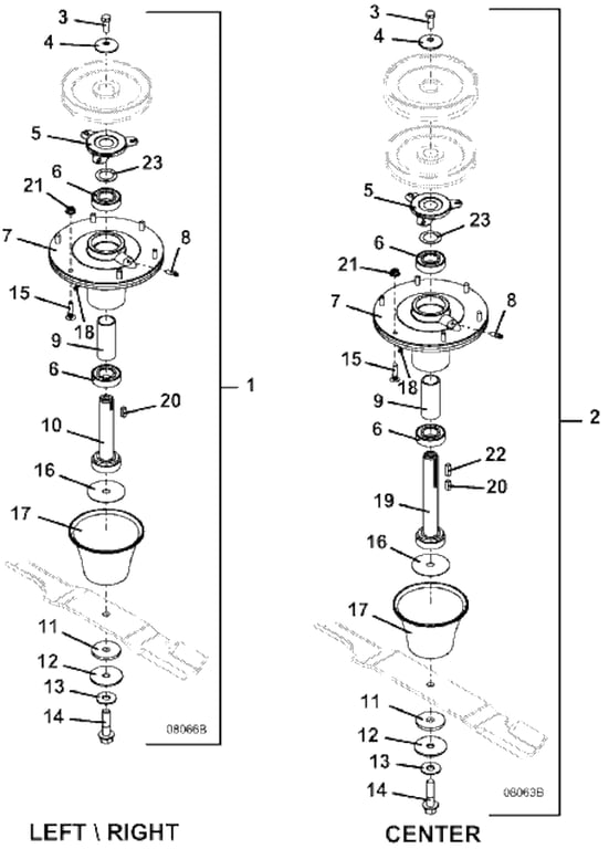 | 1 | 623763 - Spindle Assembly, left & right (includes items 3-17) | Add To Cart | |
