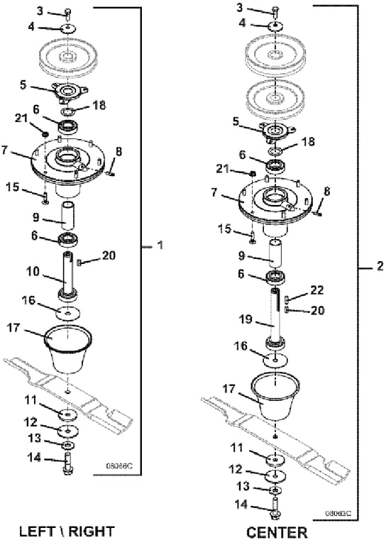 | 1 | 623763 - Spindle Assembly, Left & Right (includes items 3-18, and 23) | Add To Cart | |
