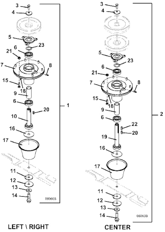 2 | 623780 - Spindle Assembly, center (includes items 3-9 & 11-16) | Add To Cart | |