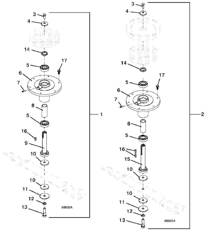 2 | 623787 - M1 Blade Spindle Assembly, center (includes items 3-8 & 10-15) | Add To Cart | |